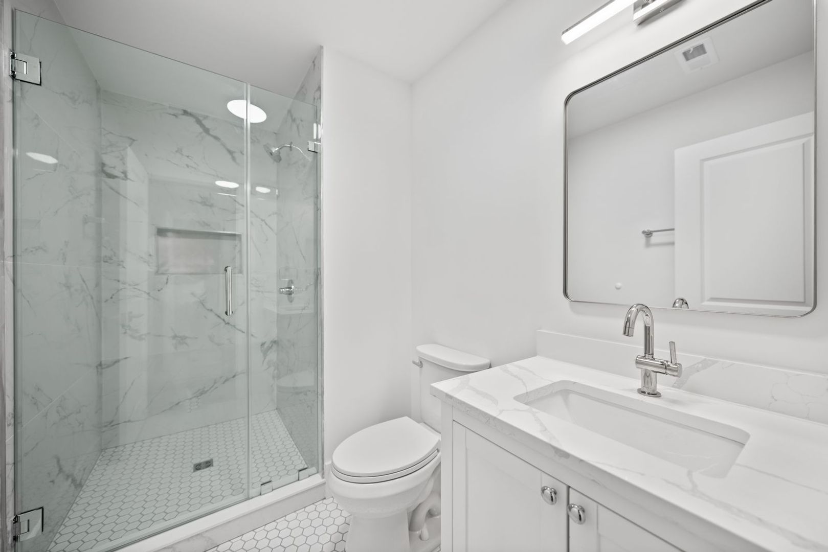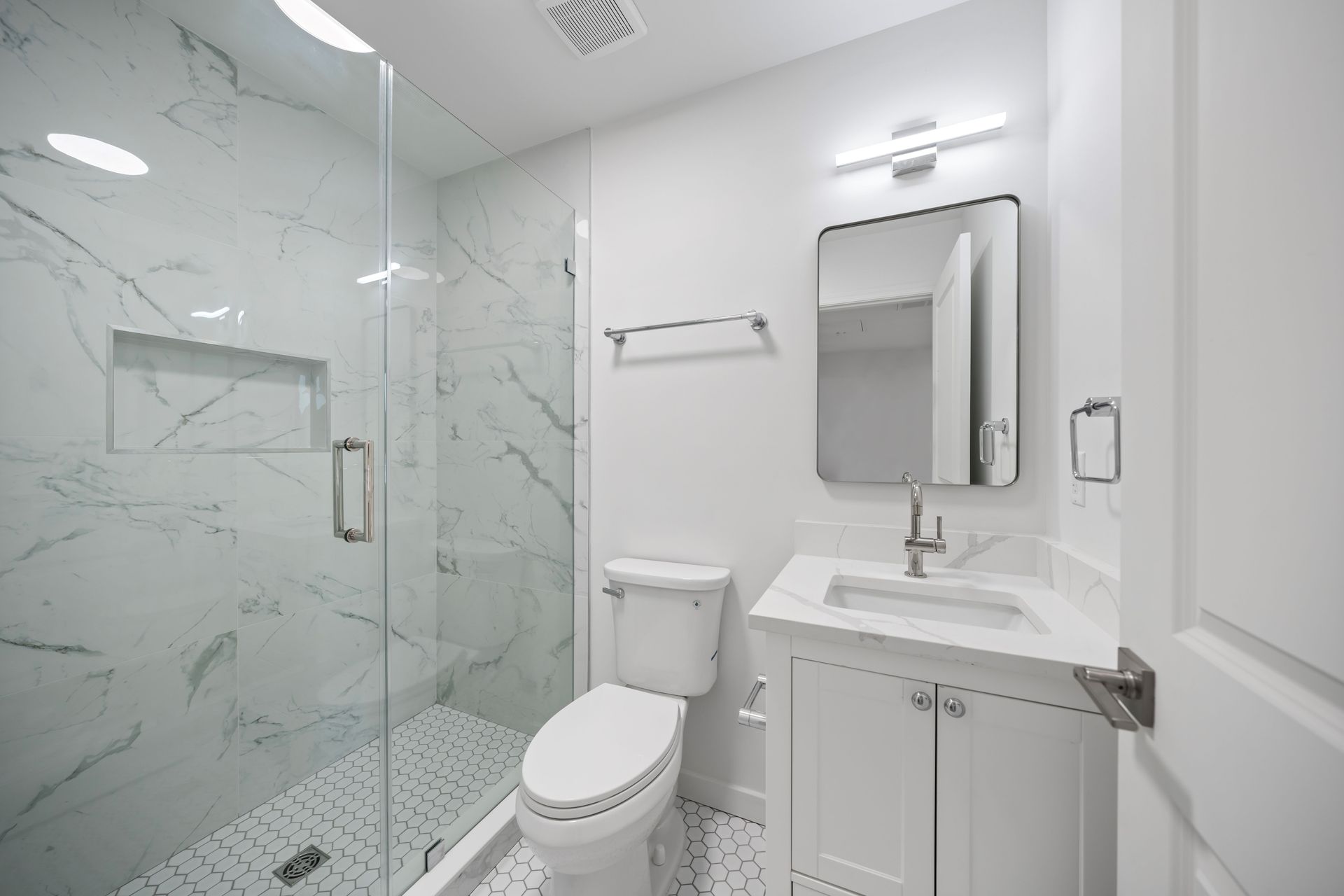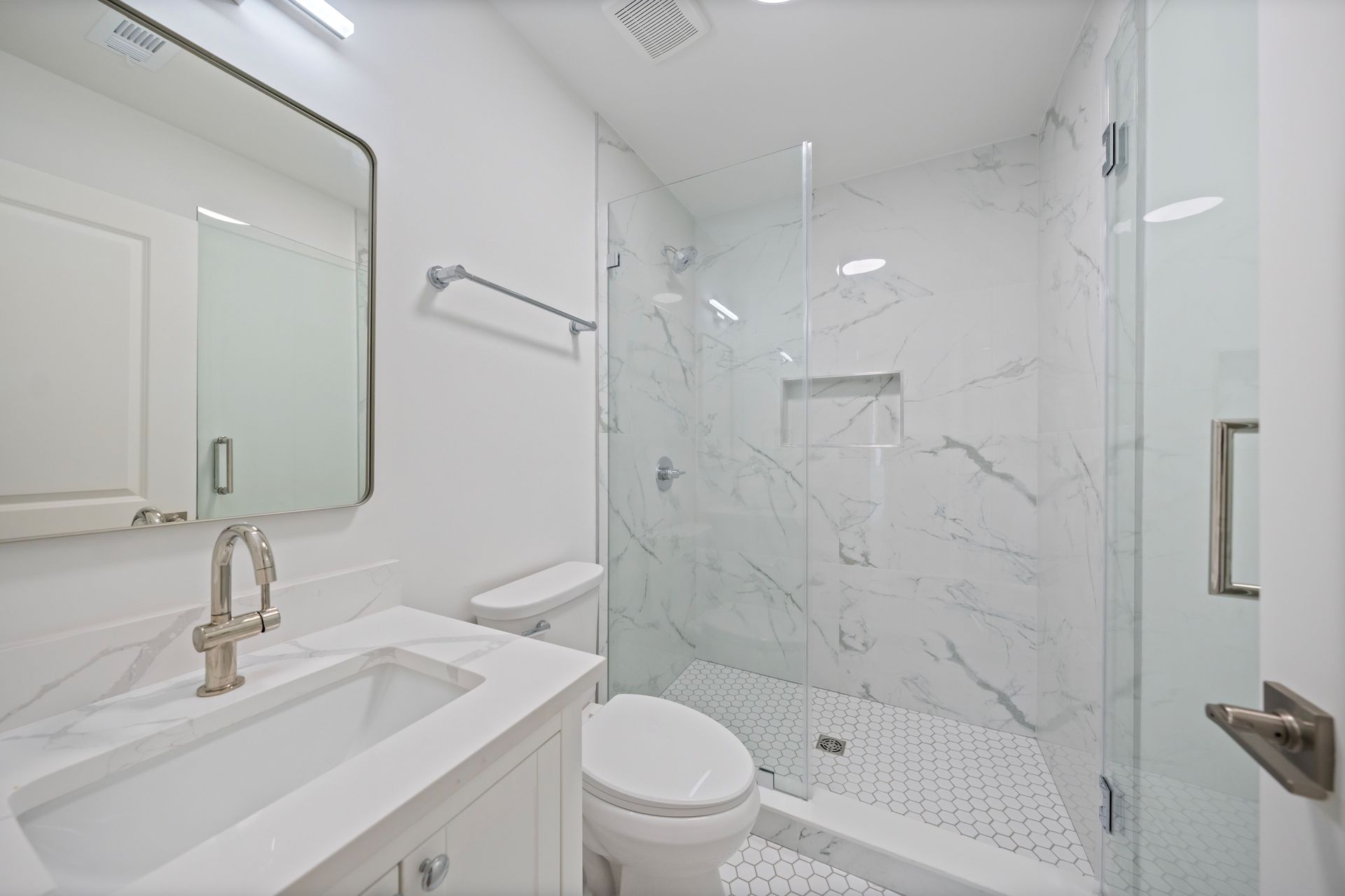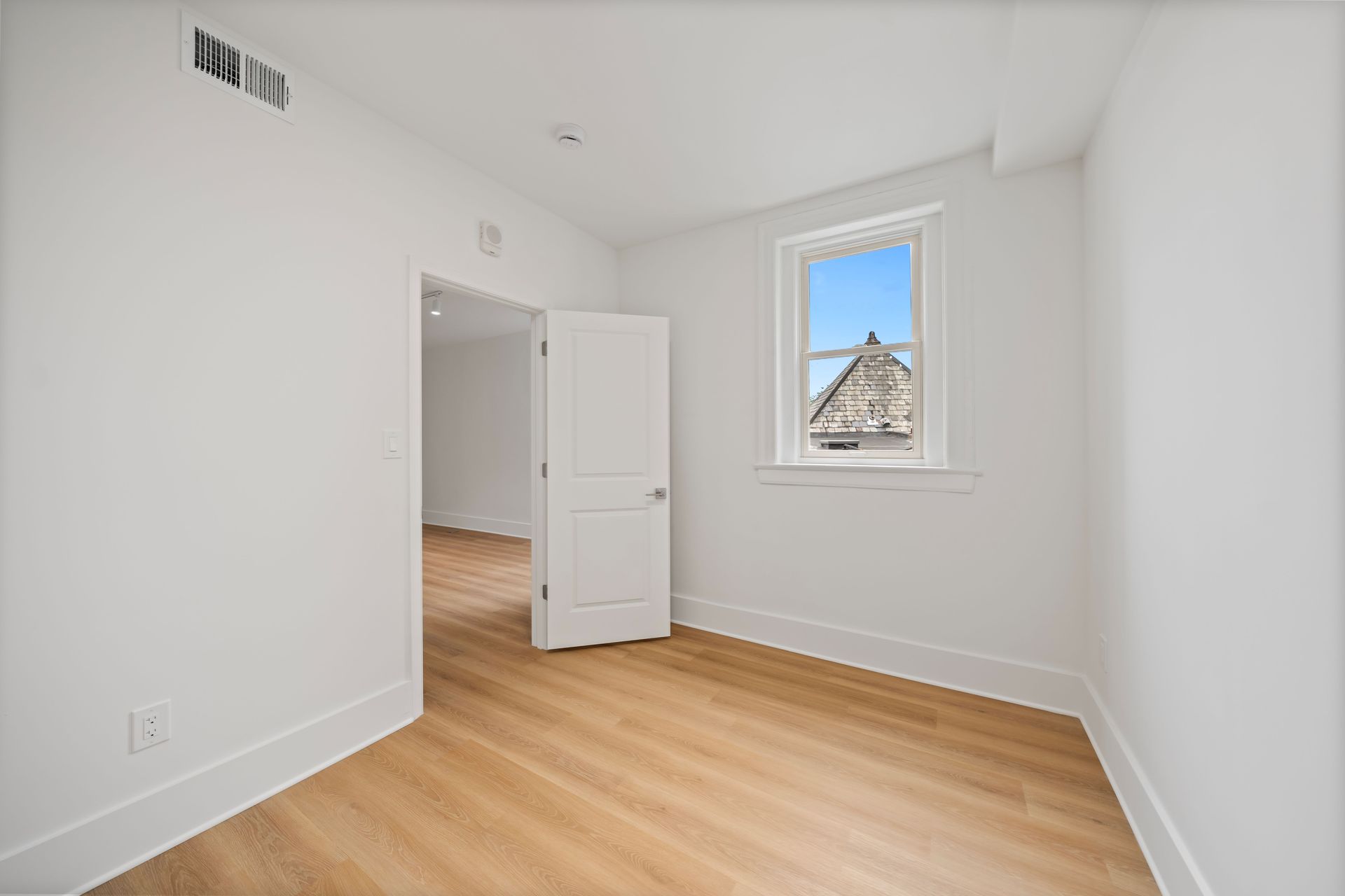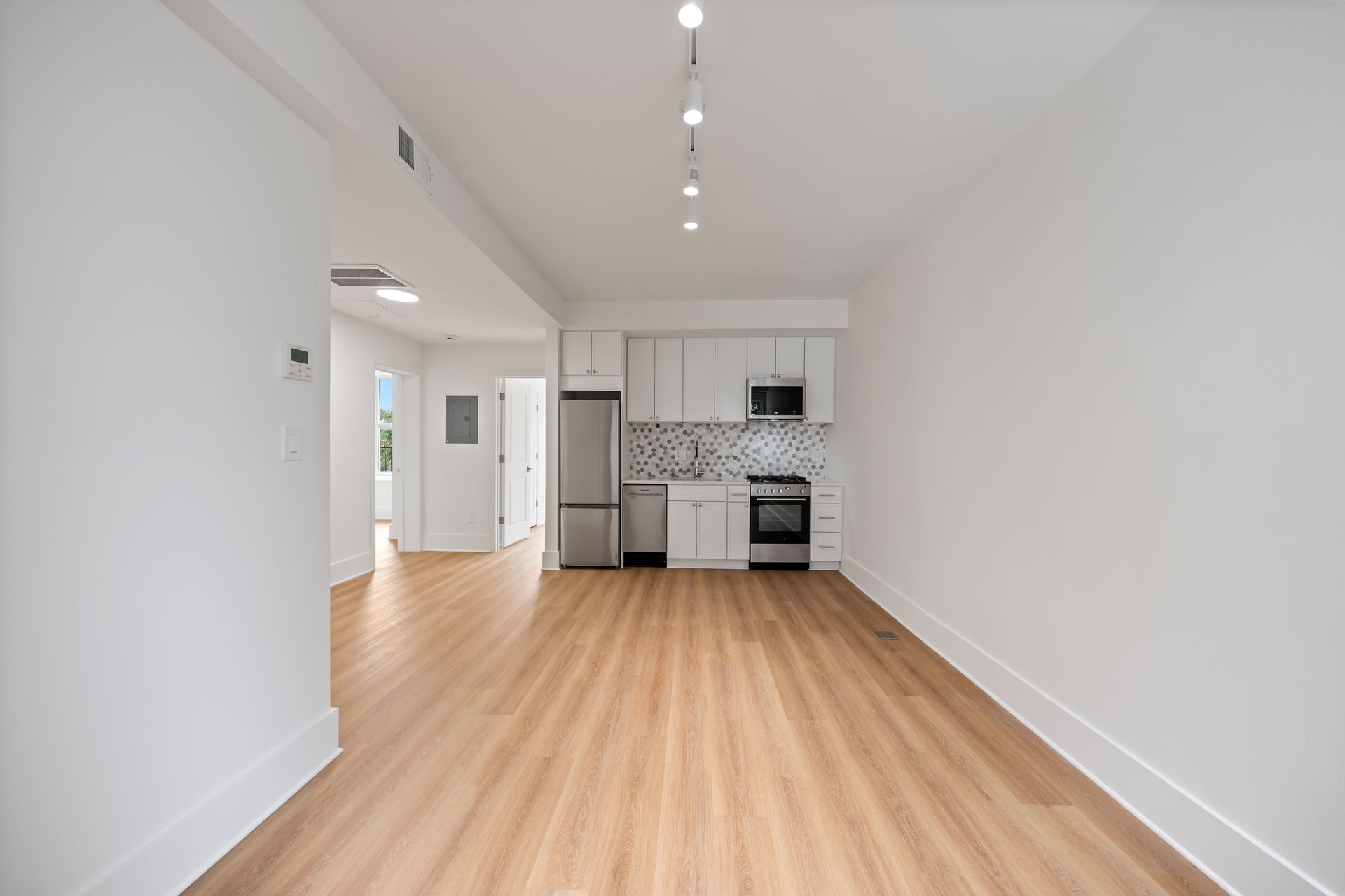 Inside, every detail reflects quality and care. The building features brand-new electric wiring throughout and all-new plumbing systems from the slab to the street, along with ducted central HVAC and individual thermostats in each unit. Kitchens are outfitted with painted wood cabinetry with soft-close drawers and doors, Calacatta Laza Quartz countertops, and a full suite of stainless-steel appliances. Additional interior finishes include custom tile backsplashes, brand-new wood-look flooring, and Carrara large format tile showers with Delta chrome fixtures and frameless glass shower doors. Rear-facing units feature walk-out decks, while two brand-new central laundry facilities serve the building for added convenience. Entry is modern and secure with the ButterflyMX smart system, allowing remote access for visitors and deliveries via phone or keypad.