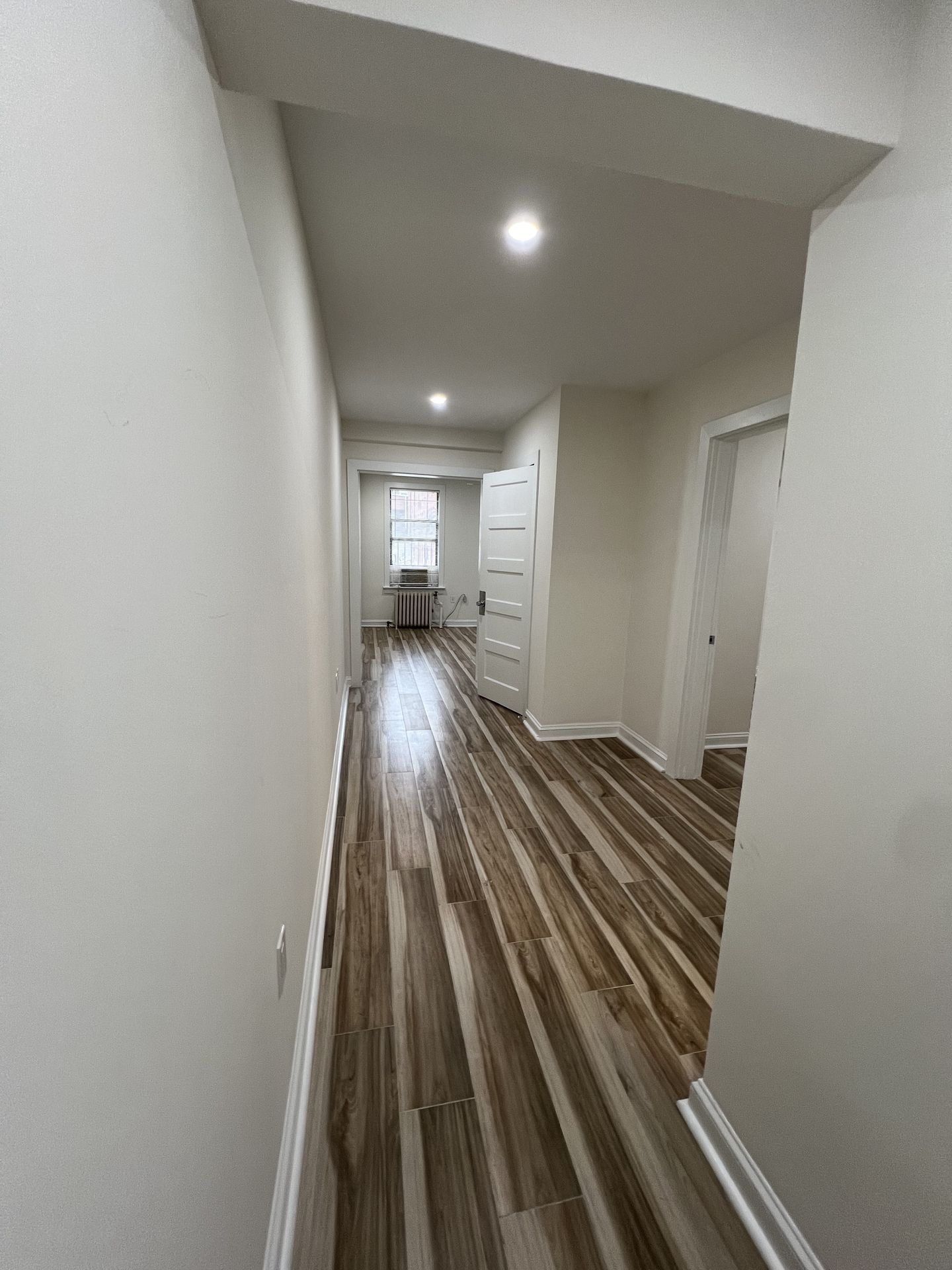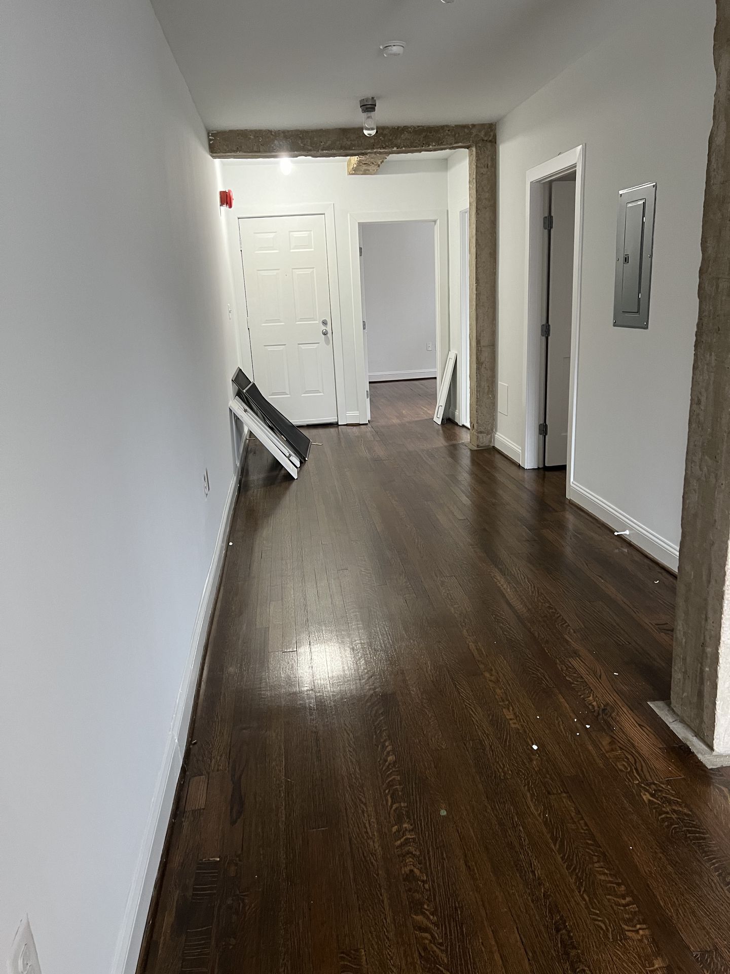 Energy-efficient building lighting, including compact-fluorescent light bulbs used throughout common spaces.